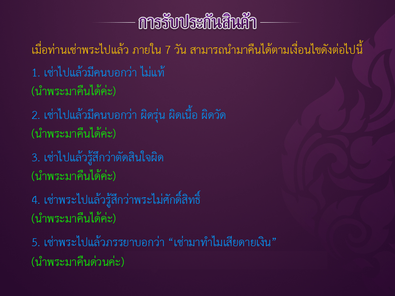 ดิฉันจึงตัดสินใจนำออกให้เช่าบูชาแก่บุคคลทั่วไป โดยพระส่วนใหญ่เป็นพระของที่บ้าน
